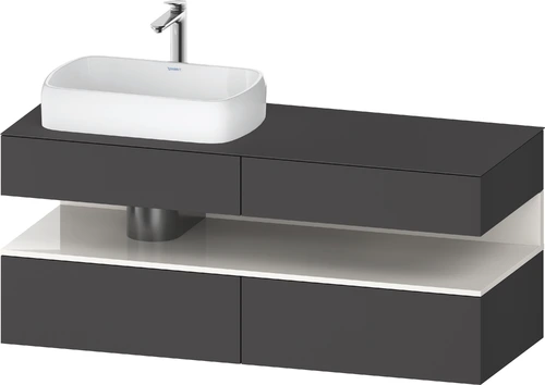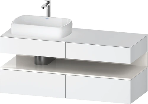 Duravit Qatego console vanity unit, 2 drawers, 2 drawers, cutout left, 1400x550x600mm, niche white high gloss