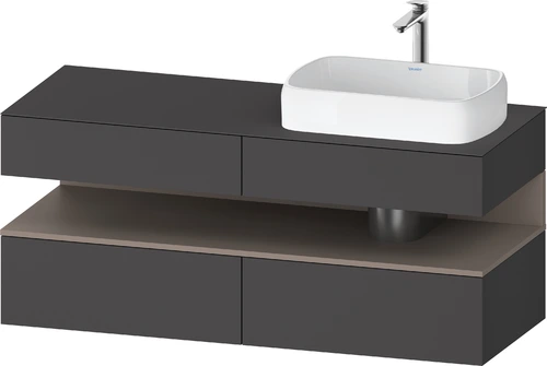 Duravit Qatego console washbasin base, 2 drawers, 2 drawers, cutout right, 1400x550x600mm, niche basalt matt