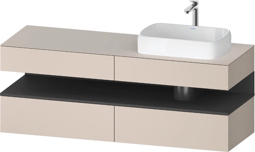 Duravit Qatego console washbasin base, 2 drawers, 2 drawers, cutout right, 1600x550x600mm, niche graphite matt