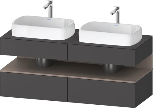 Duravit Qatego console washbasin base, 2 extensions, 2 drawers, 2 cutouts, 1400x550x600mm, niche basalt matt