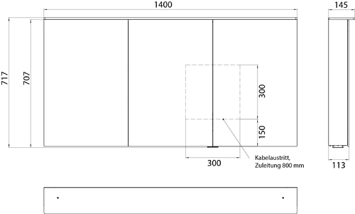 emco flat 2 design LED light mirror cabinet with light panel, 3 doors, 1400x711x113mm
