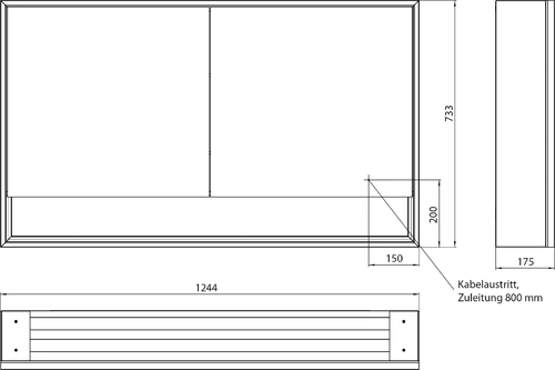 - Dimensions (WxDxH): 1244 x 175 x 733 mm