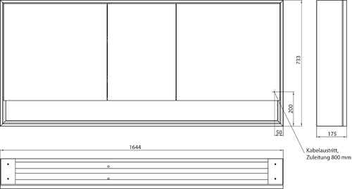 - Dimensions (WxDxH): 1644 x 175 x 733 mm