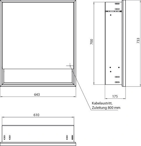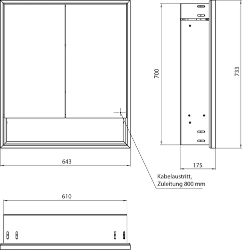 - Dimensions (WxDxH): 643 x 175 x 733 mm