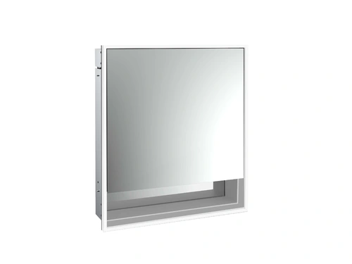 emco loft light mirror cabinet with lower shelf, 600 mm, flush-mounted model, aluminium/white