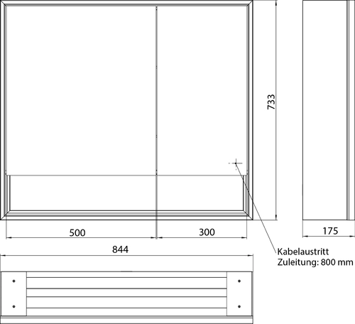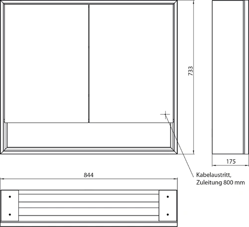 - Dimensions (WxDxH): 844 x 175 x 733 mm