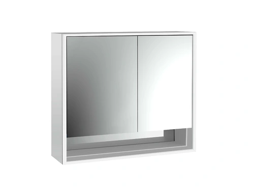emco loft light mirror cabinet with lower shelf, 800mm, 2 doors, surface-mounted model, aluminium/white