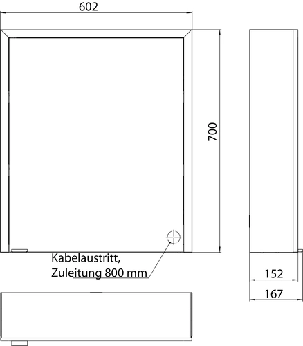 - Dimensions (WxDxH): 602 x 167 x 700 mm