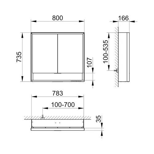 - Width x height x depth: 800 x 735 x 165 mm