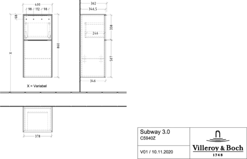 Villeroy & Boch Subway 3.0 side cabinets, 1 pull-out and 1 door, left hinge, 400x860x362mm