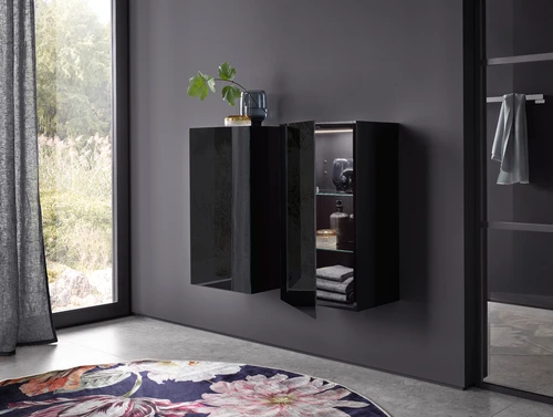 emco evo half height cabinet, 750 mm, glass door, tip-on fitting, 2 glass shelves, LED interior light