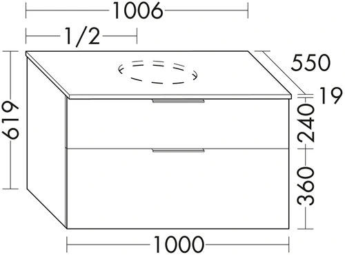 - Cut-out position in the drawer: centre