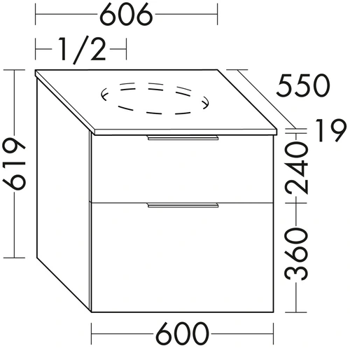 - Cut-out position in the drawer: centre