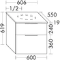 burgbad Eqio washbasin vanity unit including console top, centre cut-out, 2 drawers, width 600mm