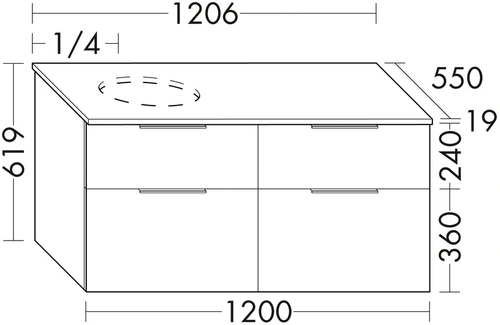 burgbad Eqio washbasin vanity unit including console top, cut-out left, 4 drawers, width 1200mm
