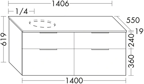 burgbad Eqio washbasin vanity unit including console top, cut-out left, 4 drawers, width 1400mm