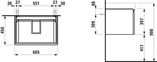 LAUFEN Pro S vanity unit, 1 drawer and internal drawer, for washbasin H810967, 665x450x390mm