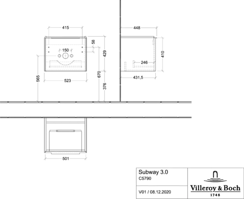 Villeroy & Boch Subway 3.0 Vanity unit, 1 drawer, 523x429x448mm