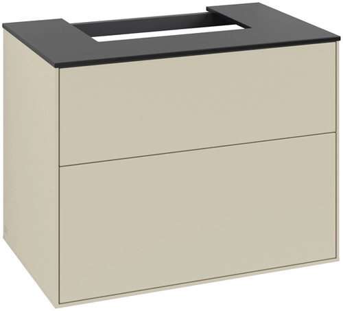 Villeroy & Boch Finion washbasin vanity unit, 2 pull-outs, washbasin centre, 800x603x501mm, Glass Black Matt