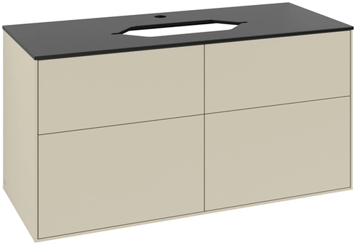 Villeroy & Boch Finion washbasin vanity unit, 4 pull-outs, washbasin centre, with tap hole, 1200x603x501mm, Glass Black Matt