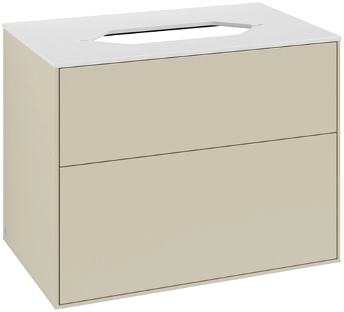 Villeroy & Boch Finion washbasin vanity unit, 2 pull-outs, washbasin centre, without tap hole, 800x603x501mm, Glass White Matt