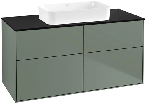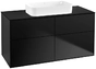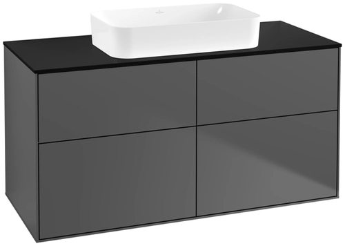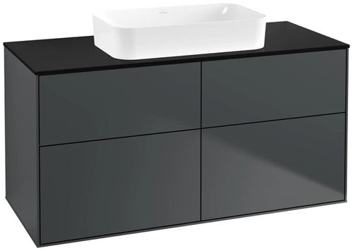 Villeroy & Boch Finion washbasin vanity unit, 4 pull-outs, with lighting, washbasin centre, without tap hole, 1200x603x501mm, Glass Black Matt