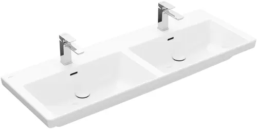 Villeroy & Boch Subway 3.0 cabinet double washbasin, 2 tap holes, with overflow, unpolished, 1300x475mm