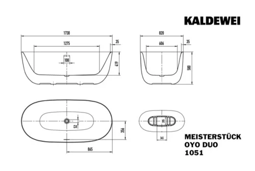 KALDEWEI MEISTERSTÜCKE OYO DUO Mod. 1051-4034, freestanding bathtub, 1730x820mm, with overflow