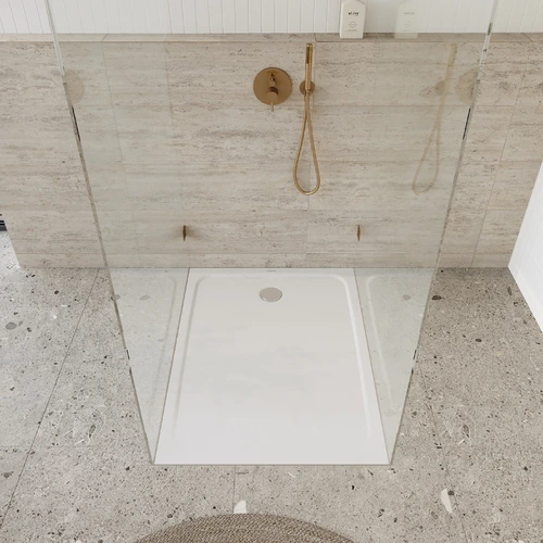 - x shower tray with extra-flat tray supportmade of
