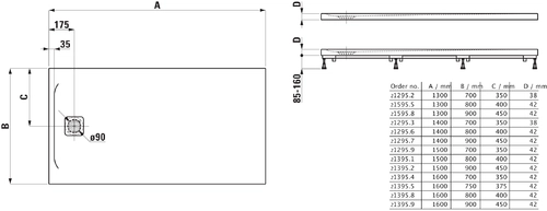 - diameter of drain: 90 mm