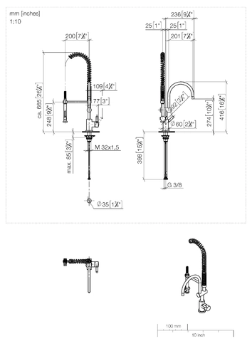 - Recommended minimum flow pressure 2.5 bar.