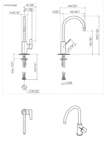Dornbracht TARA ULTRA BAR TAP single lever mixer, projection 166mm