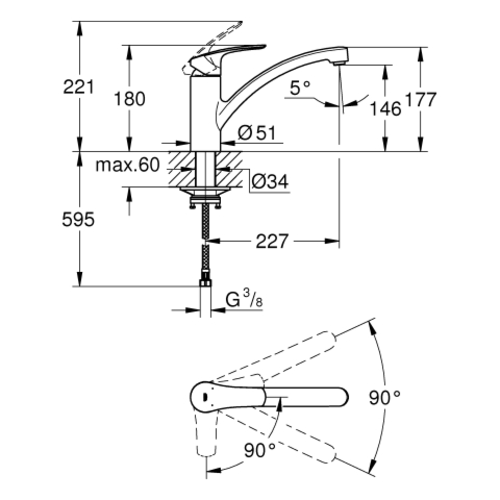 - 1 x single-lever sink mixer
