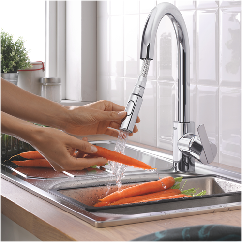 Grohe Feel single-lever sink mixer, 223 mm projection, swivelling, pull-out showers