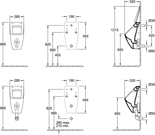 Villeroy & Boch Venticello suction urinal, DirectFlush rimless, wall-hung, for lid, 285x545x315mm