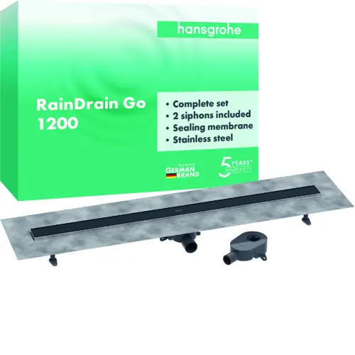 hansgrohe RainDrain Go complete set shower channel 1200, backflowable, for standard/flat installation