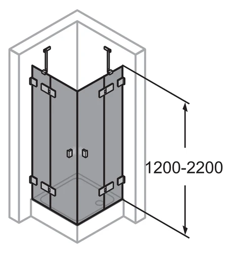 Hopper SolvaPro Swing back door frameless, fixed segments, left and right mounting, width B1 1201-1500mm, height 1200-2000mm, width B2 1201-1500mm, made to measure