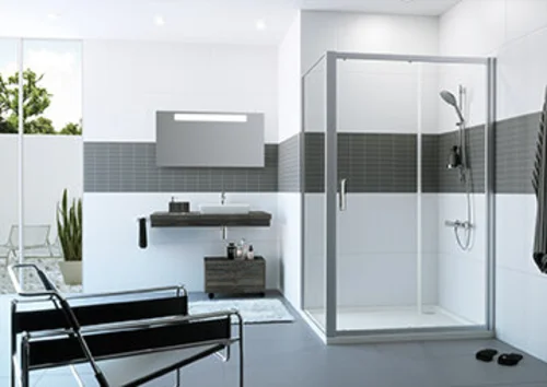 For installation in a niche and for combination with Classics 2 side panel for sliding door