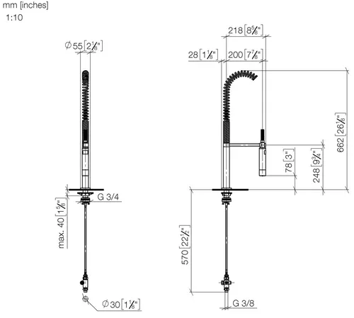 - Armaturenhöhe: 665 mm