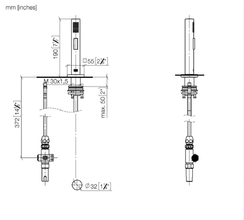- Bohrungsdurchmesser Spülbrause 32 mm