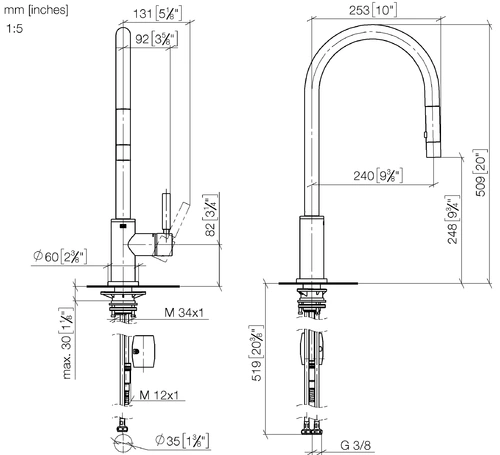 - Armaturenhöhe: 509 mm