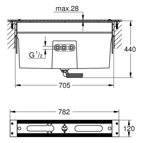 GROHE Wannenrandkombination, Unterbau für Fliesenbankmontage, mit Dichtmanschette
